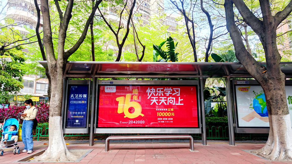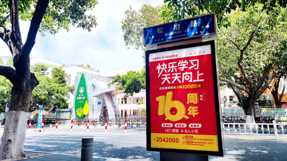 為了慶賀快樂學習16周年校慶,島內外各大戶外媒體、社區(qū)媒體以亮眼的快樂學習品牌LOGO畫面大范圍宣傳,各大戶外廣告強化了快樂學習的企業(yè)形象和在同類產品中的領導地位,更好的提高了企業(yè)產品在受眾的公眾認知度。
