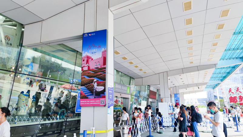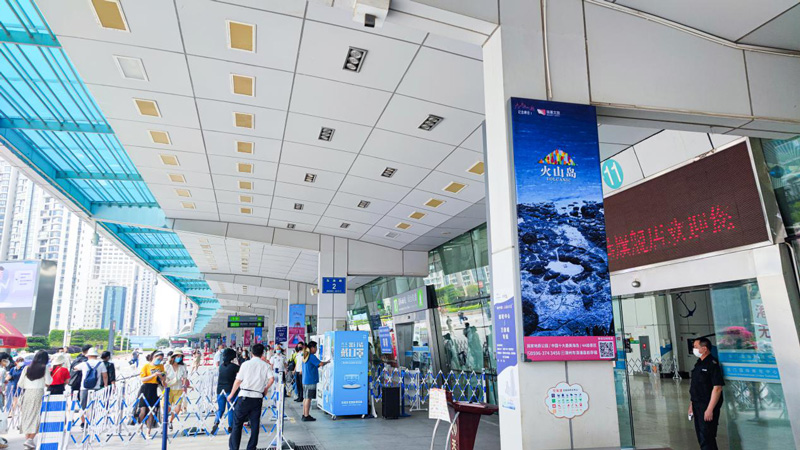 24面大幅燈箱廣告在郵輪中心出發(fā)層的廊道面向全國各地游客進(jìn)行多角度多方位的展示,通過不同的火山島的廣告畫面——藍(lán)綠色的大海、金色細(xì)軟的沙灘、暗黑色的礁石、臨海而立的粉色城堡、半球形的可愛童趣泡泡屋。讓全國游客可以領(lǐng)略火山島的獨(dú)特的濱?;鹕斤L(fēng)景線。