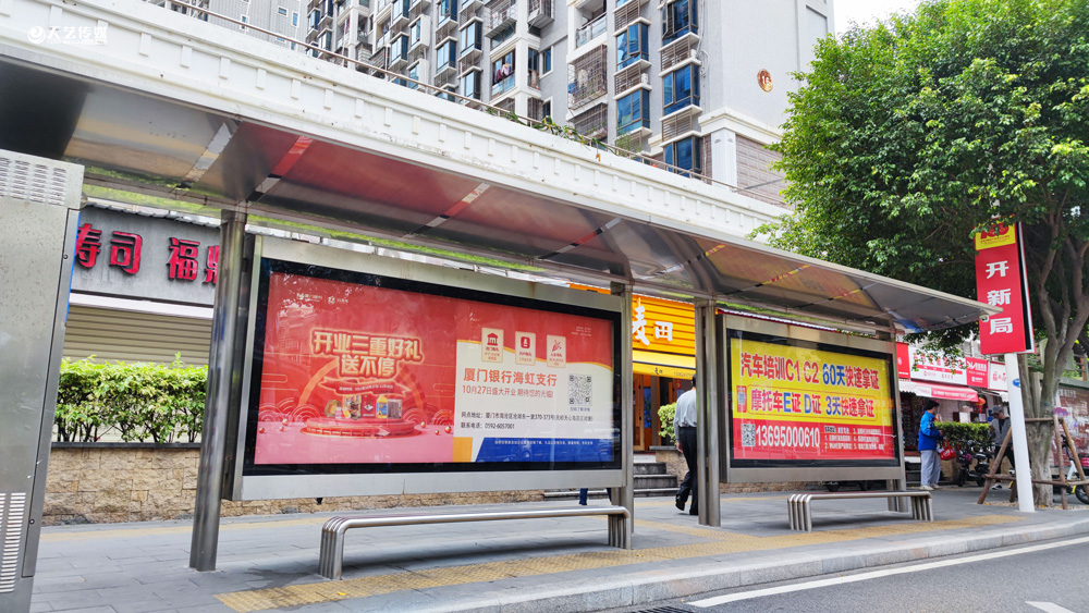 此次廈門(mén)銀行海虹支行選擇與天藝傳媒進(jìn)行戶(hù)外媒體投放的合作,投放海滄區(qū)(以海滄的生活區(qū)、海虹支行周邊區(qū)域?yàn)橹?的多個(gè)戶(hù)外廣告媒體,包括公交候車(chē)亭媒體、電梯框架廣告、社區(qū)公告欄媒體及社區(qū)出入口的道閘媒體等。