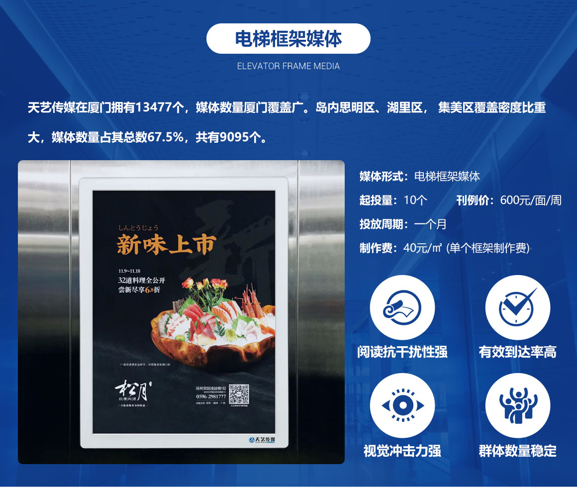 公司已在廈門擁有電梯轎廂框架廣告10000多面